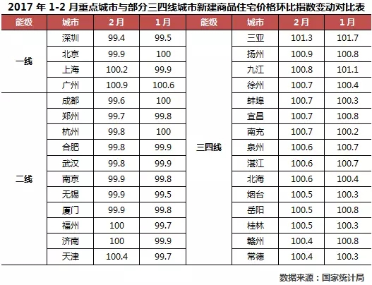 首先,15个重点城市房价几乎已经止涨,受成交结构的影响,广州前两月环比涨幅分别为0.6%和0.9%,天津2月份环比微涨0.4%,其他重点城市房价均维持稳定或小有回调。相比之下,三四线城市涨幅较大,其中三亚冬季迎来较多北方投资客,涨幅最为明显。