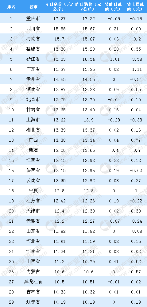 从土杂猪价格来看,11月7日全国土杂猪价格最高的是重庆市,达17.27元/公斤,较昨日价格相比下降0.05。
