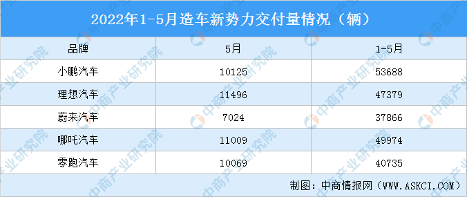 随着核心供应链加速复工复产,造车新势力企业交付量回升。2022年5月,小鹏汽车、理想汽车、哪吒汽车、零跑汽车超1万辆,蔚来汽车表现略微逊色,交付量不敌哪吒汽车、零跑汽车,累计交付量不足4万辆。