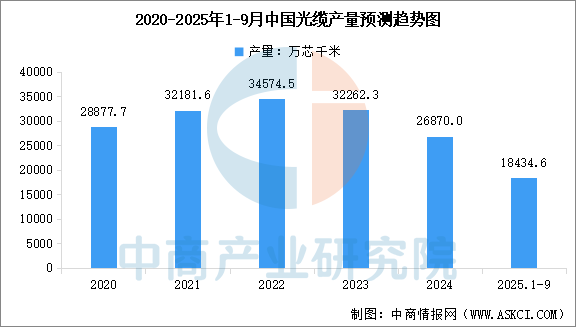 随着传统通信市场需求的修复,以及智算中心对光纤光缆需求的爆发,未来的几年内光纤光缆行业将回到增长周期。中商产业研究院发布的《2025-2030全球与中国通信电缆行业市场现状及未来发展趋势》显示,2024年中国光缆产量达26870万芯千米,较上年下降16.71%。2025年1-9月,中国光缆产量达到18434.6万芯千米。