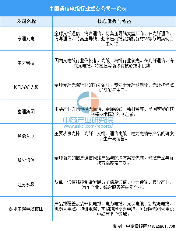 中国通信电缆行业已形成了一批以亨通集团、中天科技、长飞光纤等为代表的重点企业,它们凭借各自在光纤光网、智能电网、海洋通信等领域的深厚技术积累和市场布局,引领着行业发展。这些公司不仅是国内通信网络建设的核心供应商,其产品和解决方案也广泛应用于全球众多重大工程项目。