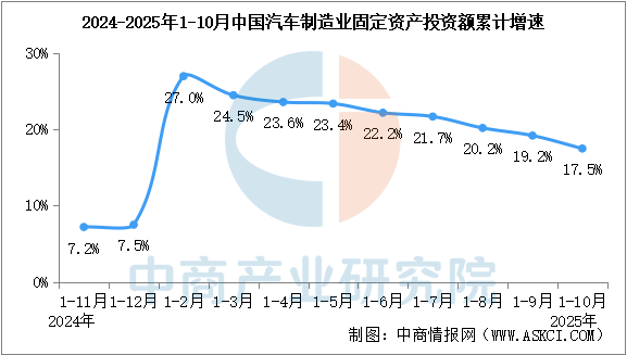 2025年1-10月,汽车制造业固定资产投资同比增长17.5%。