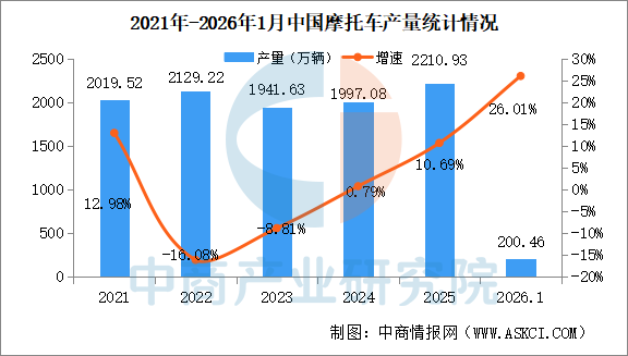 电子游艺官网讯:1月共产销摩托车200.46万辆和200.51万辆,产量环比下降0.08%,销量环比增长2.2%,同比增长26.01%和23.63%;摩托车国内销售68.21万辆,环比下降5.78%,同比增长21.16%;燃油摩托车国内销售40.92万辆,环比下降4.36%,同比增长18.17%。其中二轮车产销179.38万辆和179.73万辆,产销量环比增长2.15%和5.46%,同比增长26.23%和24.44%。大排量休闲娱乐摩托车(排量250cc以上,不含250cc)产销6.56万辆和6.38万辆,产量环比增长22.16%,销量环比下降7.4%,同比增长2.02%和8.32%。