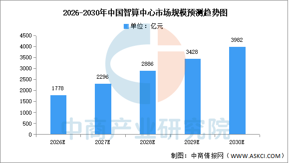 中商产业研究院发布的《2025-2030年中国智能算力行业发展与前景趋势研究报告》显示,随着市场对智能算力需求的不断增长,AIDC市场规模也将保持快速增长趋势。中商产业研究院分析师预测,2026年中国AIDC市场规模将达1778亿元,到2030年有望接近4000亿元。