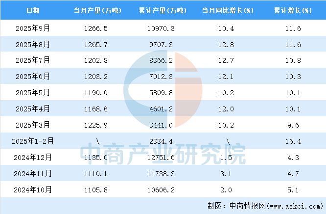 电子游艺官网讯:据中商产业研究院数据库,2025年9月全国初级形态塑料当月产量与去年同期相比增长。2025年9月全国初级形态塑料产量为1266.5万吨,同比增长10.4%。2025年1-9月全国初级形态塑料产量10970.3万吨,同比增长11.6%。