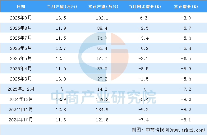 电子游艺官网讯:据中商产业研究院数据库,2025年9月全国电梯、自动扶梯及升降机当月产量与去年同期相比增长。2025年9月全国电梯、自动扶梯及升降机产量为13.5万台,同比增长6.3%。2025年1-9月全国电梯、自动扶梯及升降机产量为102.1万台,同比下降3.9%。