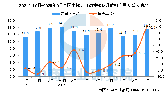 2025年9月全国电梯、自动扶梯及升降机产量增长情况