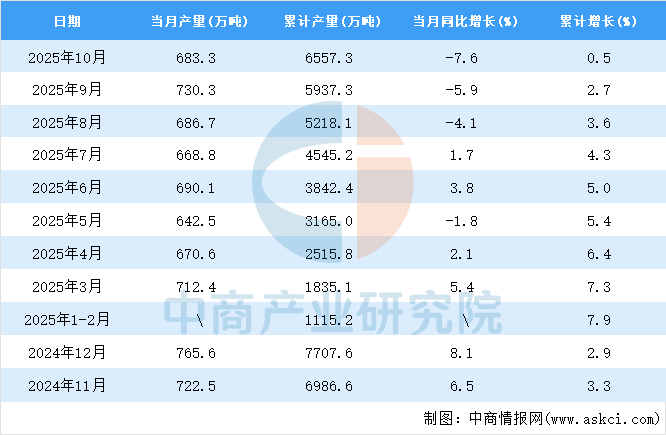 电子游艺官网讯:据中商产业研究院数据库,2025年10月全国塑料制品当月产量与去年同期相比下降。2025年10月全国塑料制品产量为683.3万吨,同比下降7.6%。2025年1-10月全国塑料制品产量6557.3万吨,同比增长0.5%。