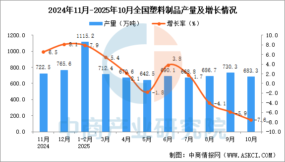 2025年10月全国塑料制品产量增长情况