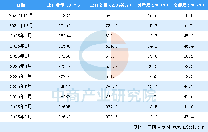 从金额方面来看,数据显示,2025年1-9月中国变压器出口金额6478.7百万美元,同比增长39%。