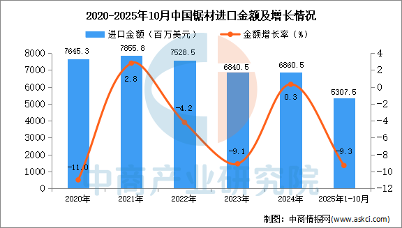 电子游艺官网讯:据中商产业研究院数据库显示,2024年中国锯材进口量2673万立方米,同比下降3.6%。最新数据显示,2025年1-10月我国锯材累计进口量2017万立方米,同比下降11.4%。
