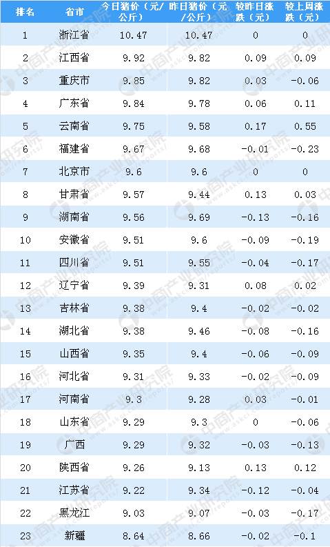 2018年5月8日全国各省市生猪价格排行榜(附全榜单)